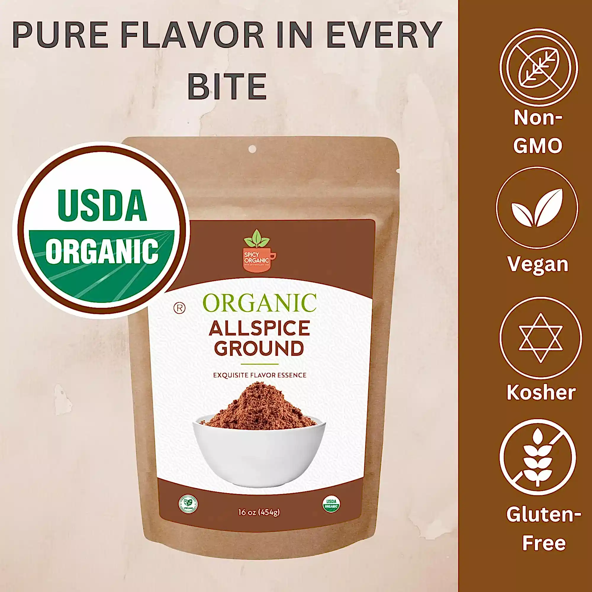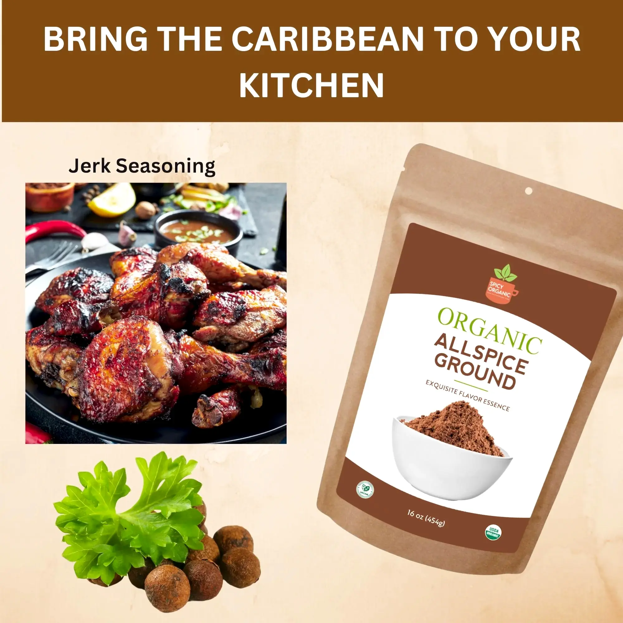 Organic Allspice Ground - Certified USDA organic- Allspice Powder Seasoning for Baking, Marinades, Pickling, Stews, Sauces, and Beverages