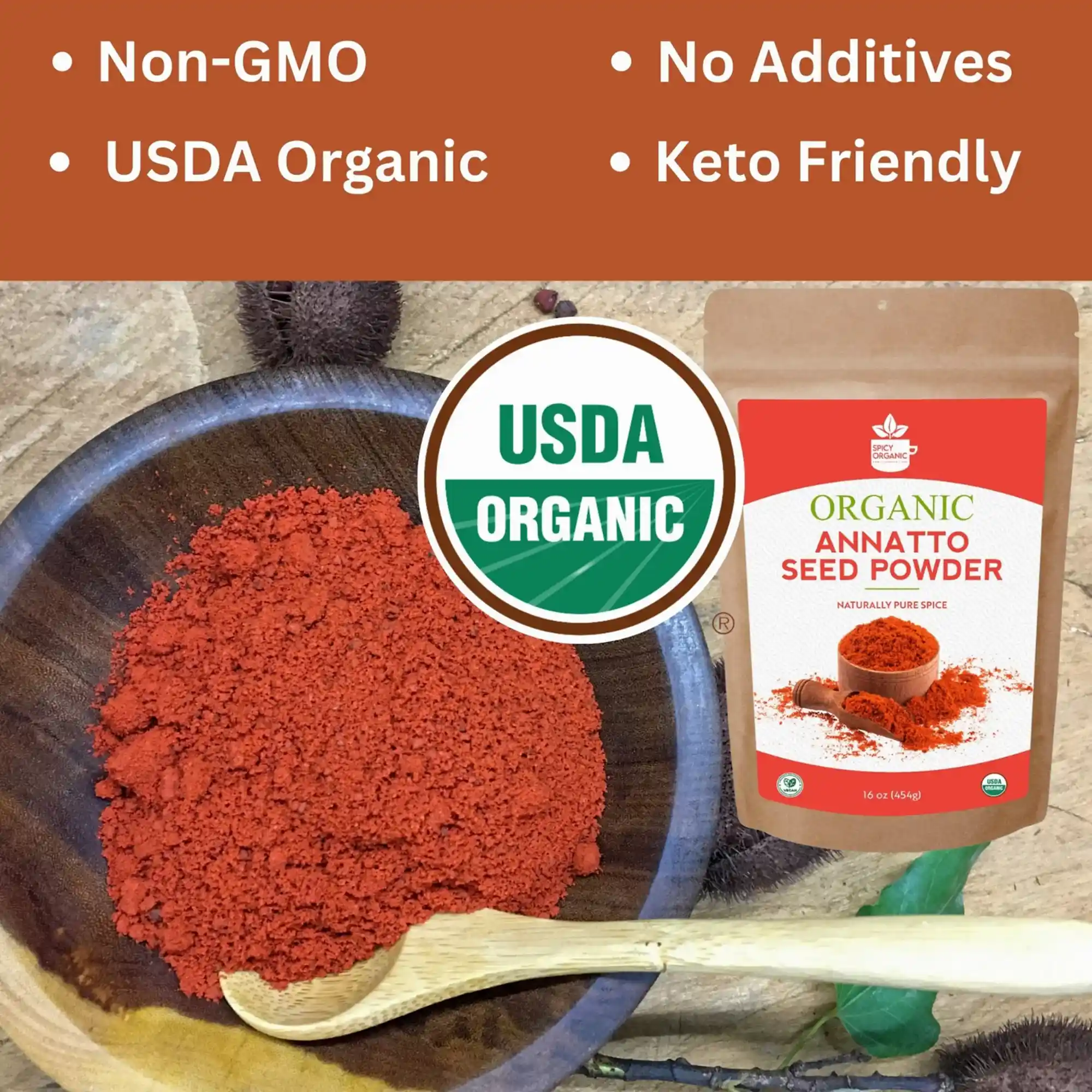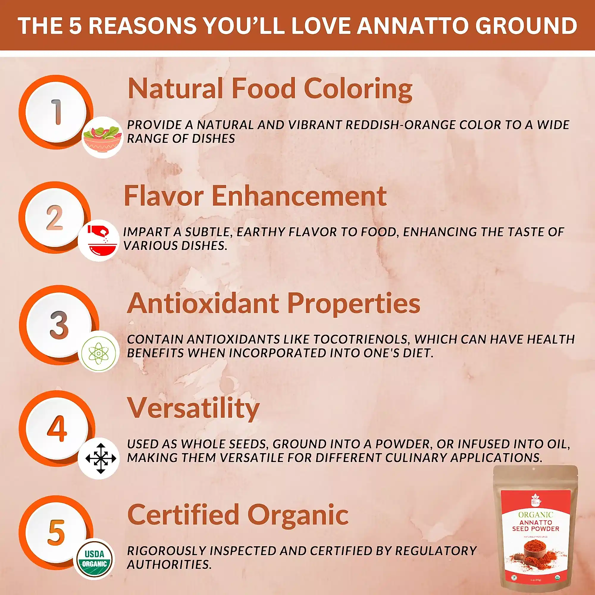Organic Annatto Ground - Certified USDA Organic - Ground Achiote Powder for Seasoning and Cooking