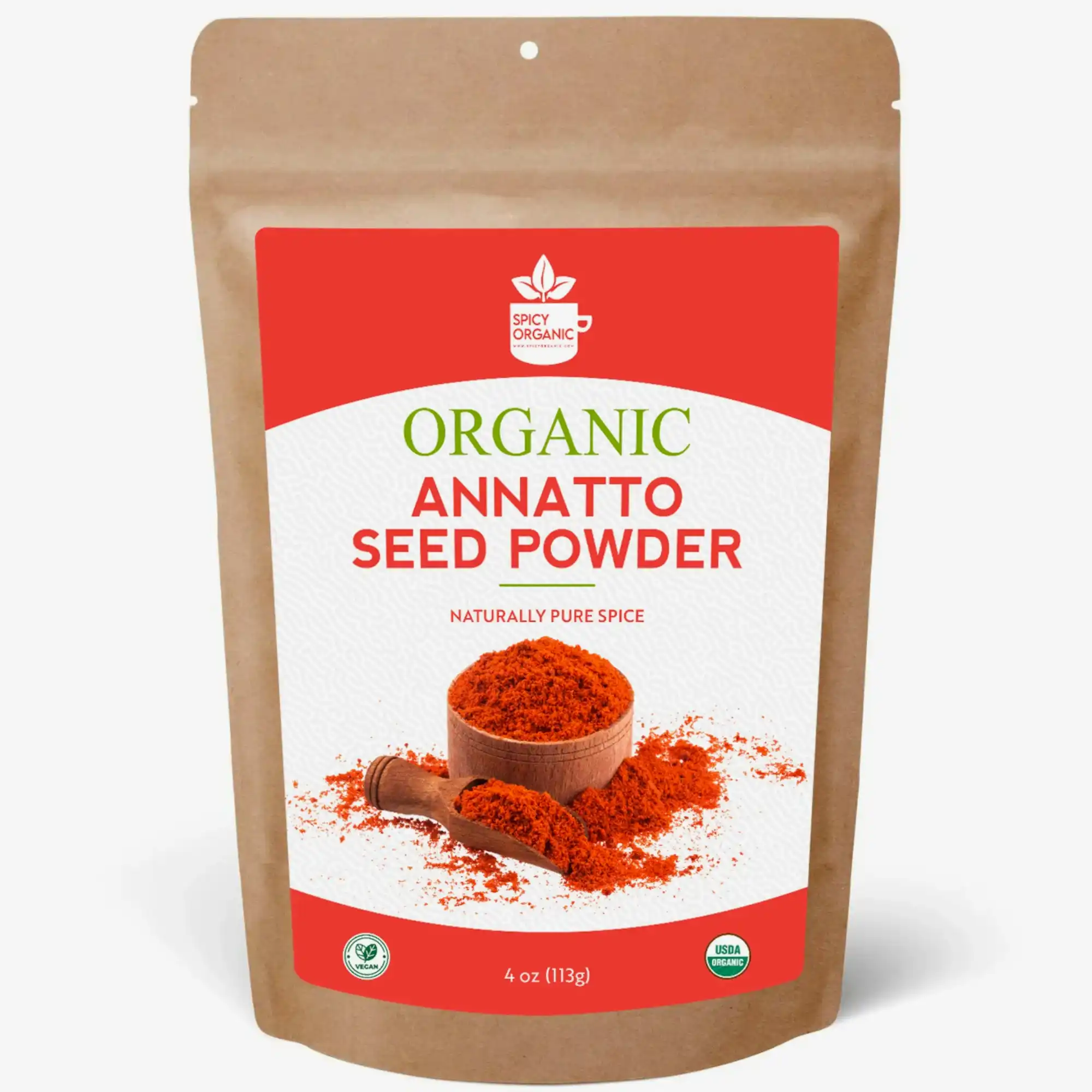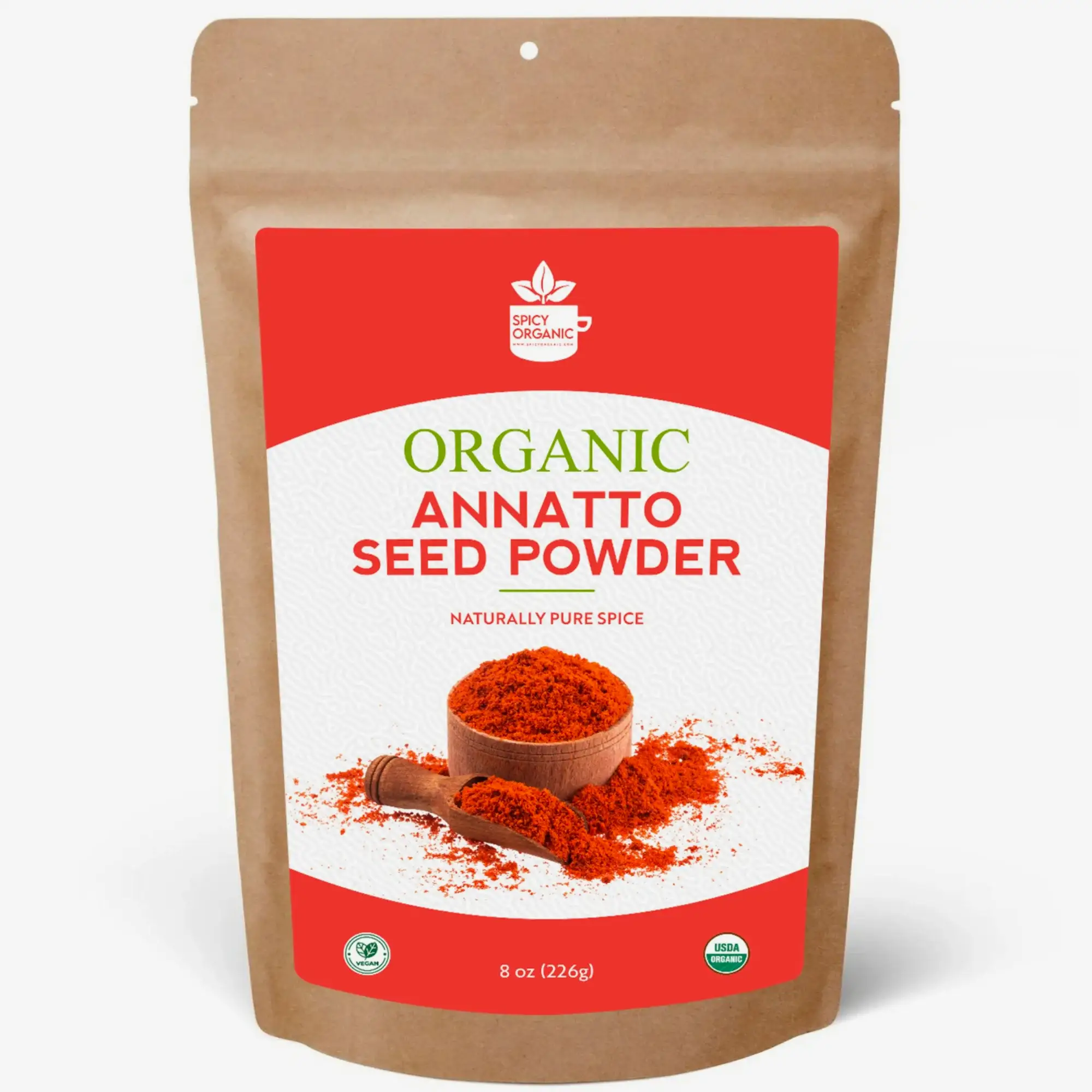 Experience the vibrant essence of our Organic Annatto Powder, also known as achiote, achuete, or atsuete. Derived from ground annatto seeds, this natural spice powder is your key to infusing both flavor and vivid color into your dishes.