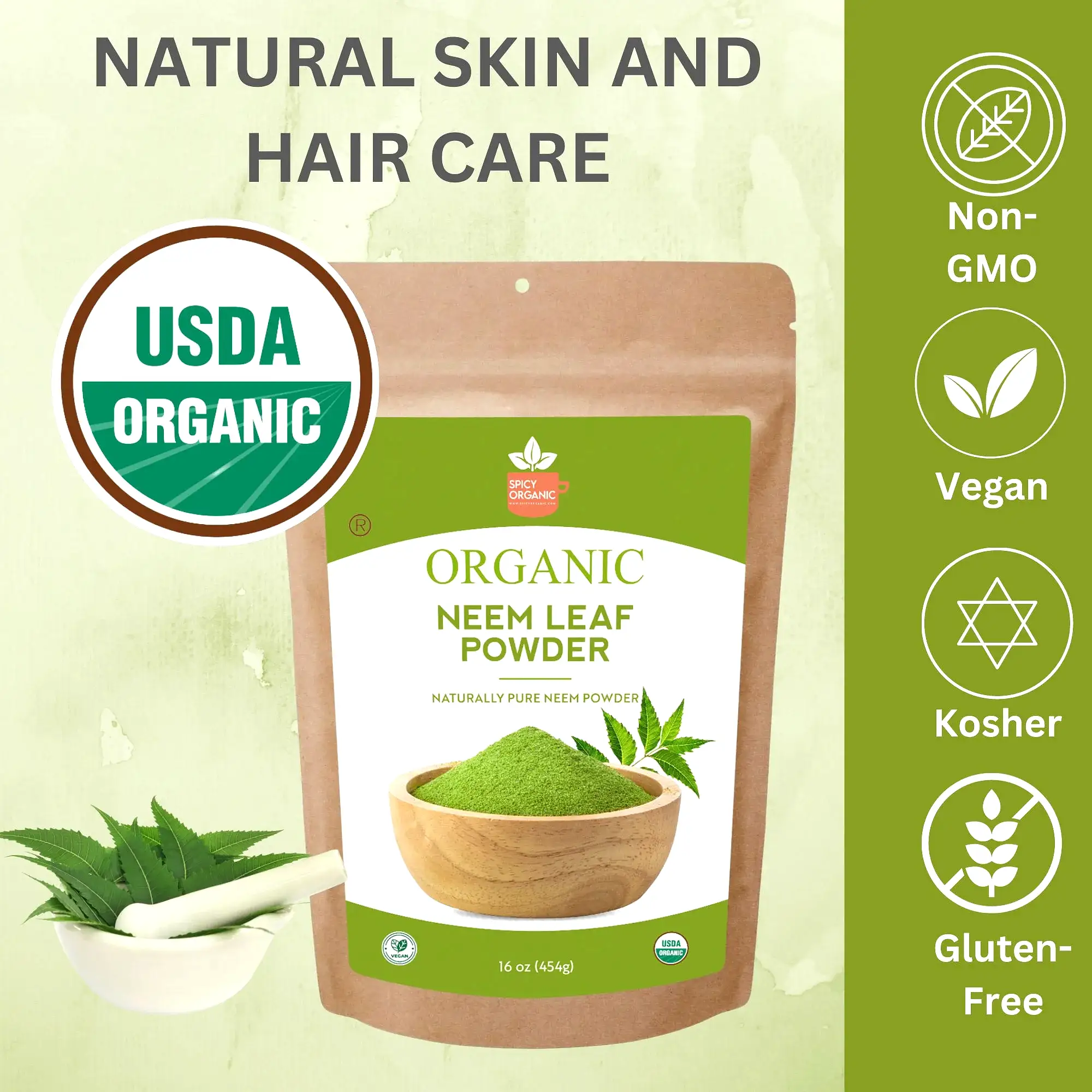 Spicy Organic’s Neem Powder is made from 100% organically grown neem leaves, carefully dried and finely milled into a vibrant green powder. Sourced from trusted organic farms, this powder is USDA certified, non-GMO, and vegan, with no added preservatives, flavors, or synthetic ingredients.