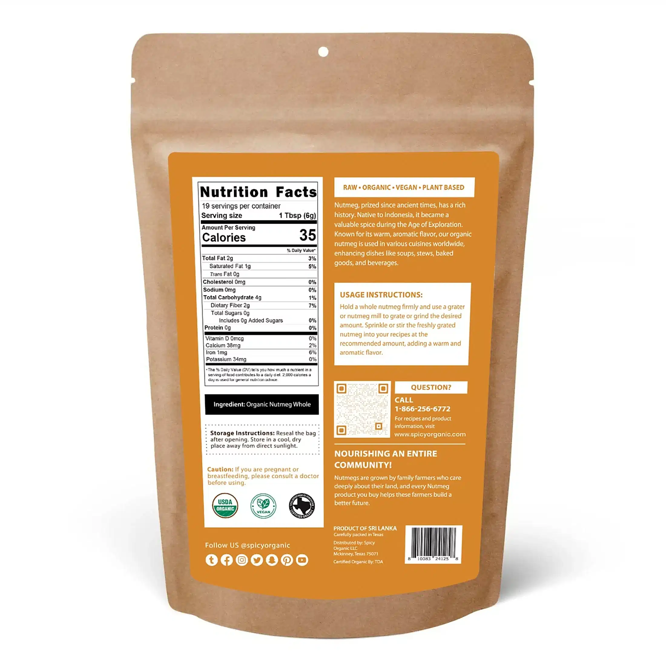 Freshly Gratable: Packaged in whole form, you can grate our organic nutmeg fresh whenever needed, ensuring you savor its full flavor and potency in every dish.